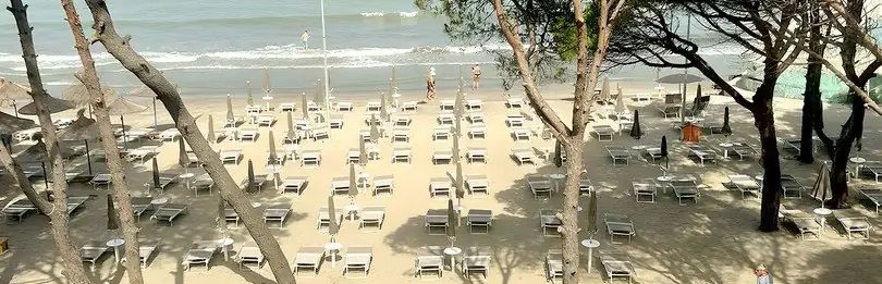 Posiada bezpośredni dostęp do piaszczystej publicznej plaży, z wydzieloną częścią hotelową. Plaża oferuje łagodne zejście do morza oraz bezpłatne leżaki i materace dla Gości.