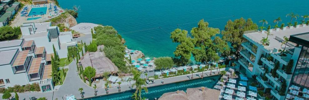 Hotel dysponuje prywatną piaszczysto-kamienistą plażą z łagodnym zejściem do morza. Dostępne są bezpłatne parasole i leżaki. Resort oferuje również taras wypoczynkowy nad wodą oraz transfer na spokojną, żwirową plażę oddaloną o ok. 600 m.