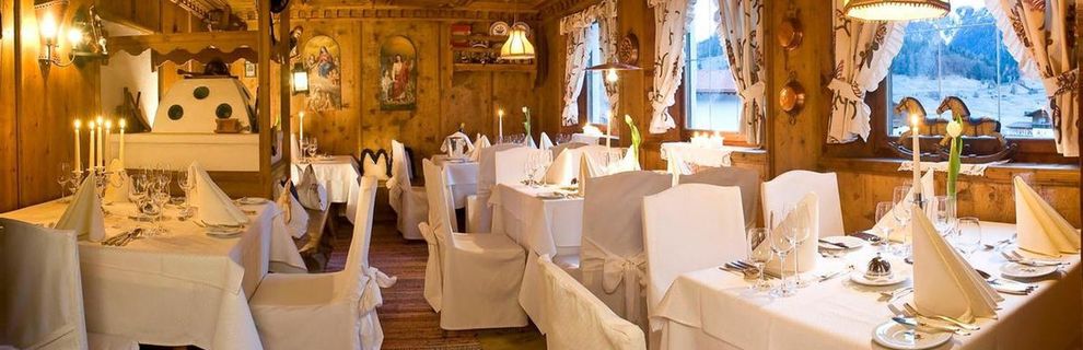 Bufet śniadaniowy z kącikiem zdrowej żywności. Wieczorem wybór 4 daniowego menu i bufet sałatkowy. Menu dla dzieci. 1 x tydzień uroczysta kolacja lub fondue. 6 x tydzień po południu ciasto lub przekąski z bufetu. Menu bożonarodzeniowe. Wszystkie posiłki serwowane są w budynku głównym. Uroczysta kolacja sylwestrowa z muzyką na żywo, za opłatą.