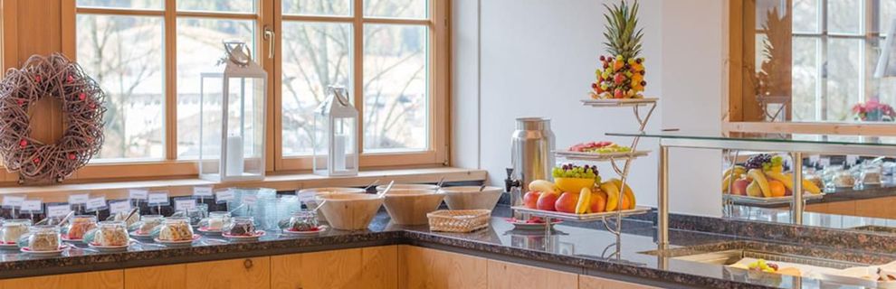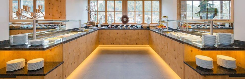 Bufet śniadaniowy ze zdrową żywnością. Wieczorem wybór 4-daniowego menu i bufet sałatkowy. 2x tydzień wieczór ze specjałami regionu (bufet chłopski, fondue itp.). Po południu Apres Ski. 1x tydzień śniadanie z szampanem.