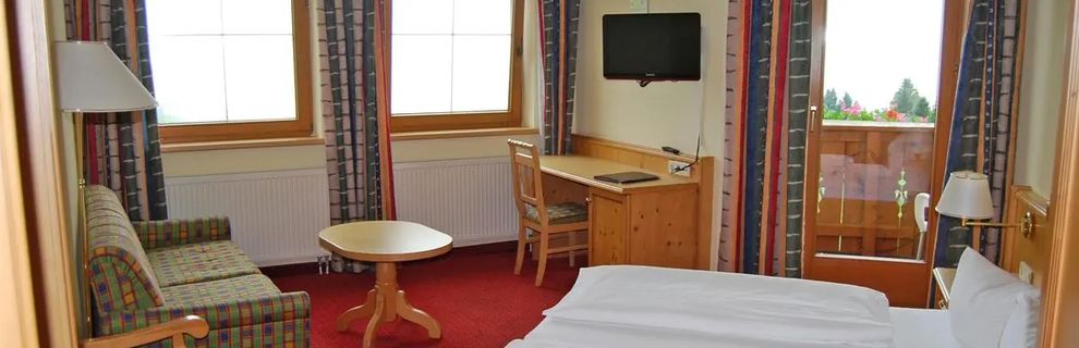 Wszystkie pokoje w stylu tyrolskim są przytulnie i komfortowo urządzone. Dysponują one prysznicem/WC, Wi-Fi (za opłatą), telefonem, TV sat. ze zintegrowanym radiem, sejfem, suszarką do włosów, lusterkiem kosmetycznym i balkonem. Zakwaterowanie możliwe zarówno w budynku głównym, jak i sąsiednim.