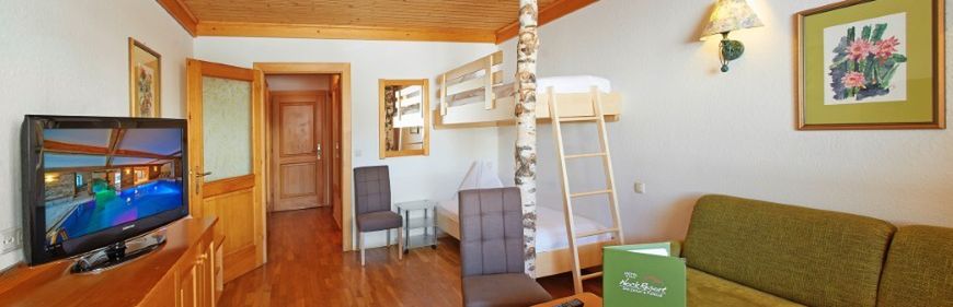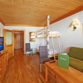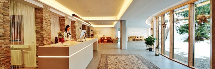 Przytulny hotel posiada halę hotelową z recepcją, lounge z kominkiem, 2 windy, Wi-Fi (1 urządzenie/pokój w cenie), restaurację, różne izby, przechowalnię sprzętu narciarskiego z suszarką do butów i bar. Obszerna strefa wellness o powierzchni niemal 1000 m2 obejmuje 2 kryte baseny, whirlpool, saunę fińską, saunę, grotę parową, kabinę z podczerwienią, obszerny pomieszczenia relaksacyjne, niewielką fontannę z wodą do picia, a także studio fitness (wszystko bezpłatnie). Godziny otwarcia: kompleks saun: 15:00 - 19:00, baseny: 07:00 - 19:00. Za opłatą można skorzystać z masaży, solarium i hali do gry w squasha. Dodatkowo goście mogą brać udział w różnych bezpłatnych zajęciach sportowych, wieczorach tanecznych i wieczorach z muzyką na żywo. Dla najmłodszych oferowana jest animacja (od 1. roku życia, niedz. - pt., w godz: 09:00 - 16:00 oraz 18:45 - 21:00), specjalny program w czasie ferii (np. pokazy magii, minizoo itp.), piłkarzyki, tenis stołowy, trampolina, konsola do gier (częściowo za opłatą) oraz pokój zabaw dla dzieci. Dodatkowo, za opłatą można zagrać w bilarda lub w rzutki. Miejsca parkingowe oraz garaż bezpłatnie (ograniczona dostępność).
