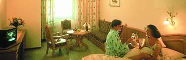 Przytulne pokoje z łazienką lub prysznicem/WC, TV, radiem i telefonem. Pokoje położone w skrzydle południowym hotelu mają balkon. W pokojach płaszcze kąpielowe do dyspozycji. Możliwa dostawka.
