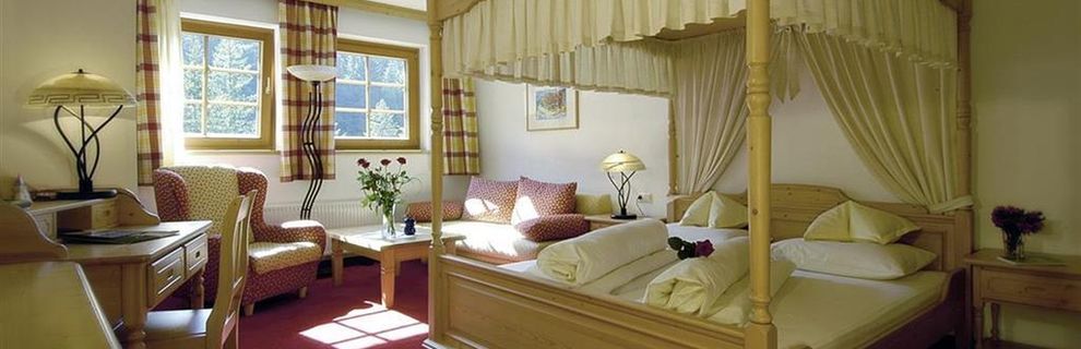 w hotelu: wyposażone w TV sat., radio, łazienkę (wanna i prysznic, suszarka), oddzielne WC i bidet. Płaszcz kąpielowy do wypożyczenia Sejf, łóżeczko dla dziecka wliczone w cenę. DZX1: ok. 27 m2, wanna; JSX1: ok. 35 m2, z balkonem lub łóżko z baldachimem bez balkonu. W wiosce Almdörfl: APX1: 3-pokojowe mieszkania dla 2-4 osób, ok. 52 m2. Pokój dzienny z piecem kaflowym, aneksem jadalnym i kuchennym. TV, radio, sejf. Sypialnia z łóżkiem 2-osobowym, druga z 2 łóżkami pojedynczymi. Balkon lub taras. Łazienka z suszarką, osobne WC z pralką (bez opłaty).