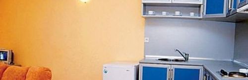 Apartamenty klimatyzowane (max dla 4 osób) sypialnia (łóżko małżeńskie), salon z rozkładaną sofą, TV sat, w pełni wyposażony aneks kuchenny z lodówką, łazienka z WC i prysznicem (ręczniki na wyposażeniu), balkon, deska do prasowania.