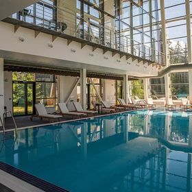 Na terenie hotelu dostępny jest kryty basen o nowoczesnej architekturze i przeszklonych ścianach, z którego można podziwiać okoliczne widoki. Leżaki i strefa relaksu pozwalają na pełny odpoczynek.