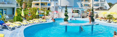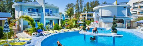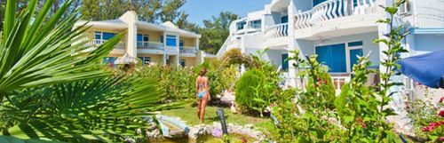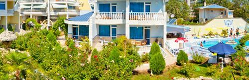 niewielki, składający się z 6 willi, położony ok. 300 m od piaszczystej plaży, leżaki i parasole dodatkowo płatne, basen o nieregularnym kształcie ze zjeżdżalnią dla dzieci, klimatyzowana restauracja, plac zabaw, szachy ogrodowe, tenis stołowy, parking, bezpłatne WiFi na terenie całego hotelu, pralnia, winda, grill ogrodowy, hamaki, otoczony zadbanym ogrodem