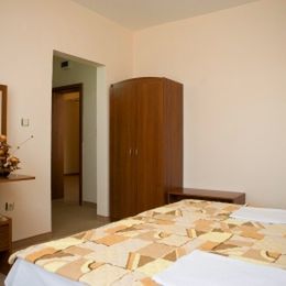 Nowy pensjonat, czyste pokoje z dość podstawowym wyposażeniem - nasz: 2 łóżka dla 3(4) osób, lodówka, klimatyzacja, mała lodóweczka, duży taras (cena 50 BGN/dzień). Dużym plusem pensjonatu jest bar/restauracja z kuchnią domową (raczej nie ma gości z zewnątrz). Właścicielkę można poporosić o przygotowanie tradycyjnych potraw Bułgarskich w bardzo atrakcyjnej cenie (np. posiłek dla 5 os. rodziny za 40-50 BGN). Do morza trzeba się przespacerować i raczej należy się nastawić na odpowczynek na plaży, bo basen mały i położenie pensjonatu w miasteczku nie daje kliematu do odpowczynku. Jest parking zamknięty. Główne zalety: nowy budynek, dobry relacja jakość/cena, tania kuchnia. Sierpień 2009