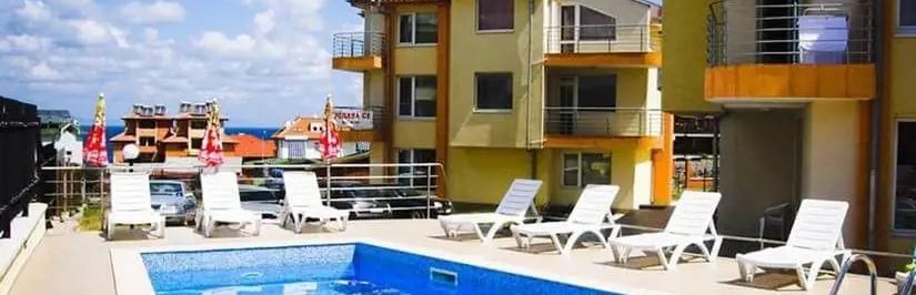 Obiekt zaprasza Gościa na leniwe, słoneczne dni w kameralnym, rodzinnym klimacie - zaledwie kilka kroków od ciepłego piasku i kojących fal Morza Czarnego. Obiekt oferuje tylko 12 komfortowych pokoi, dzięki czemu panuje tu wyjątkowa atmosfera spokoju i intymności. Przestronne lobby z recepcją i klimatyczny bar zapewniają wygodę codziennego wypoczynku. Gość może korzystać z zewnętrznego basenu z leżakami i parasolami, co czyni to miejsce idealnym wyborem dla rodzin szukających wypoczynku blisko plaży. Wysoki standard usług oraz dogodne położenie, a także możliwość aktywnego spędzania czasu na plaży, sprawiają, że hotel cieszy się doskonałymi uznaniem za strefę relaksu i troskę o każdy szczegół pobytu.