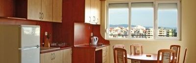 komfortowe apartamenty z sypialnią, pokojem dziennym, wyposażonym aneksem kuchennym, łazienką, klimatyzacją, TV sat., tarasem lub balkonem.