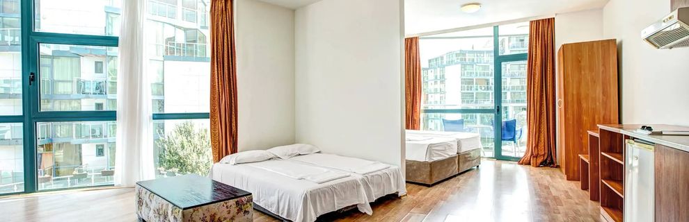 Hotel położony jest w miejscowości Primorsko. Miasteczko jest bardzo urokliwe. W sezonie sporo się dzieje. Warto chodzić na spacery do miasta. Z samego hotelu do "centrum" idzie się około 10 minut. Z hotelu na plaże, gdzie są parasole i leżaki hotelowe idzie się około 10-15 minut. Sam hotel jest duży, składa się z kilku budynków. Otrzymałam apartament, który składał się z dwóch pokoi, w tym jeden z aneksem kuchennym oraz balkonem. Apartament był bardzo dużo o średnim standardzie. Jedzenie w hotelu było średnie, monotonne, wybór dość mały. Na śniadania praktycznie było codziennie to samo (tylko dwa rodzaje chleba). Obiady i kolacje raczej też nie były zróżnicowane. Czasem się zdarzało, że na kolacjach pojawiły się jakieś nowe dania. Ciasta codziennie te same, najczęściej 3-4 do wyboru. Owoców mało - przeważnie jabłka i arbuzy. Było kilka ekspresów do kawy, ale kawy niestety nie były dobre. Przez ostatnie 3 dni nie było nawet czarnej herbaty. Dużym minusem było to, że po napoje poza kawą i woda, trzeba było czekać w kolejce do jednego baru. Podczas posiłków kolejki były spore. Uważam, że drinki były w miarę dobre. Obsługa średnia, bardziej życzliwa dla Bułgarów. Jeśli komuś zależy na wysokiej temperaturze i bezchmurnym niebie to we wrześniu bywa już różnie. Podczas mojego pobytu przez 3 dni było duże zachmurzenie, ostatniego dnia padało. Podsumowując, hotel polecam osobom mało wymagającym.
