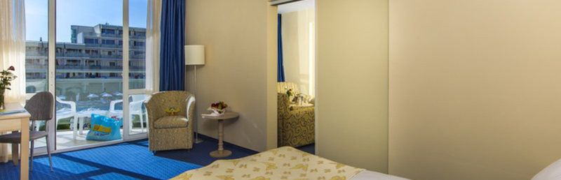 Wyposażenie: łóżko małżeńskie lub dwa pojedyncze łazienka (prysznic, suszarka do włosów, WC), klimatyzacja (czynna sezonowo), TV, telefon, lodówka, balkon. W przypadku zakwaterowania w konfiguracji 2+2 w pokoju znajduje się łóżko piętrowe.