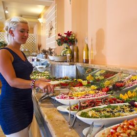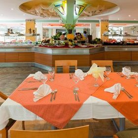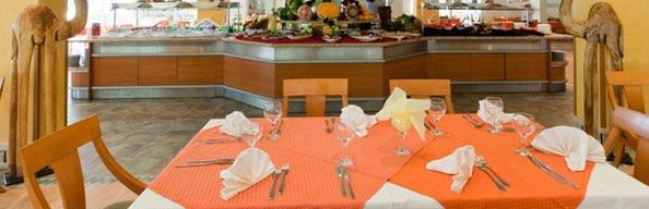 3 restauracje główne (wg zakwaterowania), 3 lobby bary, snack bar przy basenie Rodopi, bar/pizzeria przy basenie Flora Park.
