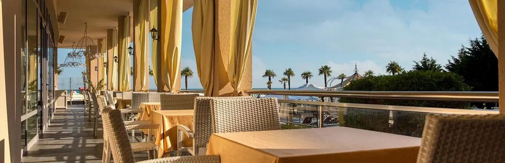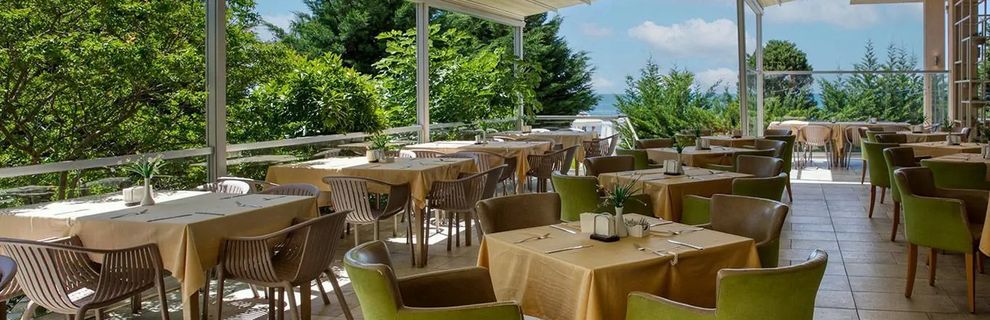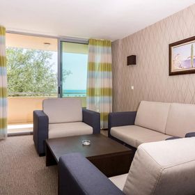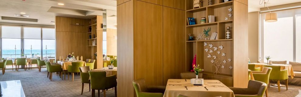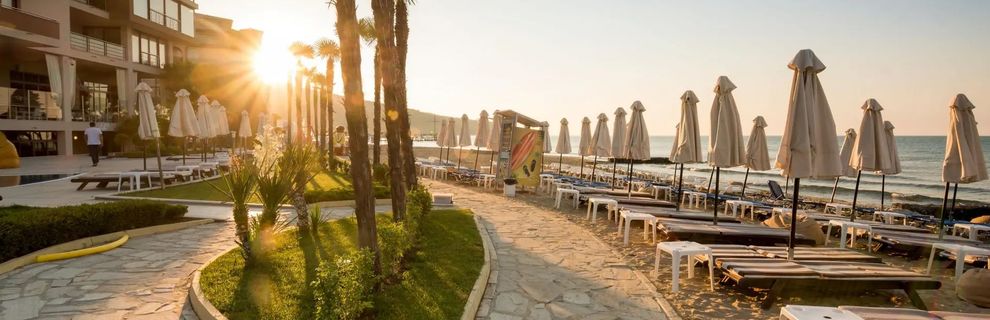 Położony bezpośrednio przy prywatnej, piaszczysto-żwirkowej plaży, na której Goście mogą korzystać z leżaków i parasoli (za dodatkową opłatą).