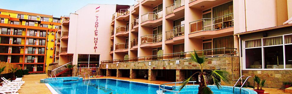 Bardzo przyjemny,kameralny hotel,bardzo sympatyczna obsługa hotelowa,czyste ,zadbane pokoje i łazienki,świetnie położony,blisko plaży i morza,2 minuty drogi do dobrze zaopatrzonego sklepu a do dużego supermarkety 15 minut,tyle samo do centrum miasteczka.Fajny,czysty basen.Super 2 tygodnie wakacji za które bardzo dziękuję obsłudze hotelu Tropics .