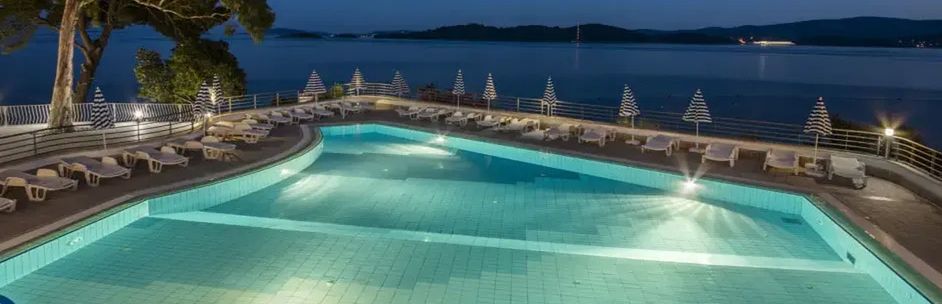Elegancki czterogwiazdkowy hotel zlokalizowany na malowniczym półwyspie Peljesac, bezpośrednio przy adriatyckiej plaży. Zbudowany w 1935 roku, a wyremontowany w 2016 roku, oferuje luksusowy wypoczynek z wyjątkowymi widokami na słynną wyspę Korcula. Hotel jest częścią sieci Aminess i składa się z głównego budynku, czterech budynków bocznych oraz oddzielnych willi.