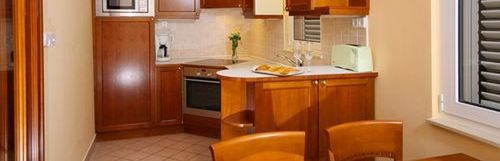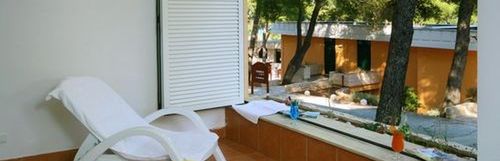 Trilo 6 Deluxe apart., apartament 6 os. większość apartamentów od strony morza, w nowej części kompleksu, klimatyzowany, luksusowo wykończony apartament o powierzchni 71 m2 wszystkie apartamenty posiadają w pełni wyposażoną kuchnię z jadalnią, salon (sofa), taras, nowoczesna łazienka, dwie sypialnie.
