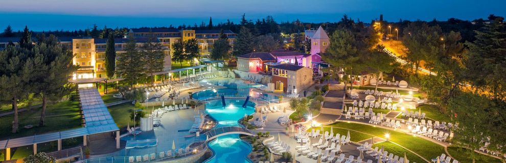 Przestronny, czterogwiazdkowy kompleks położony w malowniczej, częściowo zalesionej okolicy Katoro, tuż przy Adriatyku i zaledwie 200 m od plaży. Nowoczesny i wielokrotnie odnawiany obiekt zachwyca wyjątkową infrastrukturą i bogactwem atrakcji: goście mogą korzystać z rozległego kompleksu basenów zewnętrznych z wodospadami, basenu krytego oraz rozbudowanej strefy wellness. Komfortowe, klimatyzowane pokoje z balkonami są świetnie wyposażone, a w ofercie znajdują się również przestronne apartamenty rodzinne. Smaczne bufety w restauracji głównej, bary i letnia tawerna zapewniają doskonałą kuchnię i relaksujące chwile po całym dniu aktywności.