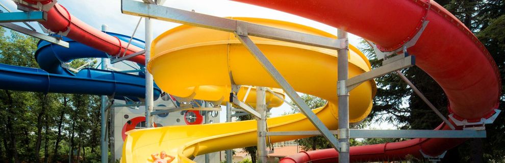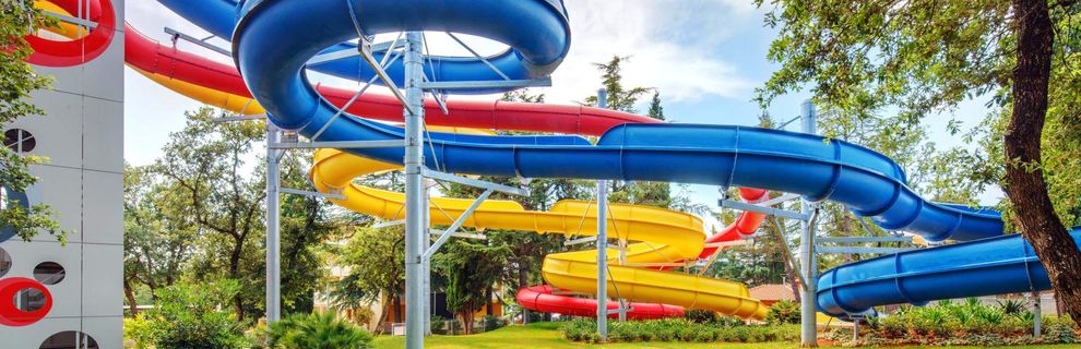 Kompleks zewnętrznych basenów z wodospadami, atrakcjami wodnymi i zjeżdżalniami. Leżaki i parasole przy basenach (w cenie, ograniczona dostępność). Ręczniki basenowe za zwrotnym depozytem.