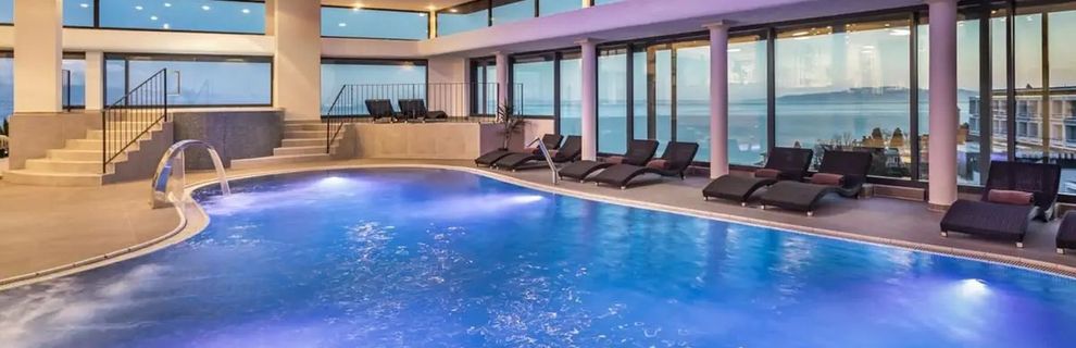 Do dyspozycji Gości zewnętrzny basen z widokiem na morze, taras słoneczny z bezpłatnymi leżakami i parasolami oraz kompleks wellness z basenem krytym z wodą morską, podgrzewanym, saunami i ścieżką Kneippa.