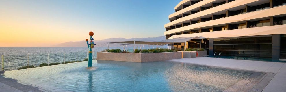 Hotel zaprasza Gości do świata luksusu i relaksu na malowniczej wyspie Brac. Ten stylowy, czterogwiazdkowy obiekt oferuje aż 217 klimatyzowanych pokoi, z prywatnymi balkonami, z których rozciągają się zachwycające widoki na lazurowe morze. Każdy pokój został wyposażony w udogodnienia, które zapewniają pełną wygodę. Gość może korzystać z krytego oraz odkrytego basenu infinity, nowoczesnych centrów fitness oraz bogatej oferty restauracyjnej. Na powitanie każdy Gość otrzymuje bezpłatnego drinka, a atmosfera miejsca sprawia, że każda chwila nabiera wyjątkowego charakteru.