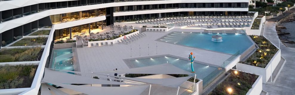 Hotel zaprasza Gości do świata luksusu i relaksu na malowniczej wyspie Brac. Ten stylowy, czterogwiazdkowy obiekt oferuje aż 217 klimatyzowanych pokoi, z prywatnymi balkonami, z których rozciągają się zachwycające widoki na lazurowe morze. Każdy pokój został wyposażony w udogodnienia, które zapewniają pełną wygodę. Gość może korzystać z krytego oraz odkrytego basenu infinity, nowoczesnych centrów fitness oraz bogatej oferty restauracyjnej. Na powitanie każdy Gość otrzymuje bezpłatnego drinka, a atmosfera miejsca sprawia, że każda chwila nabiera wyjątkowego charakteru.