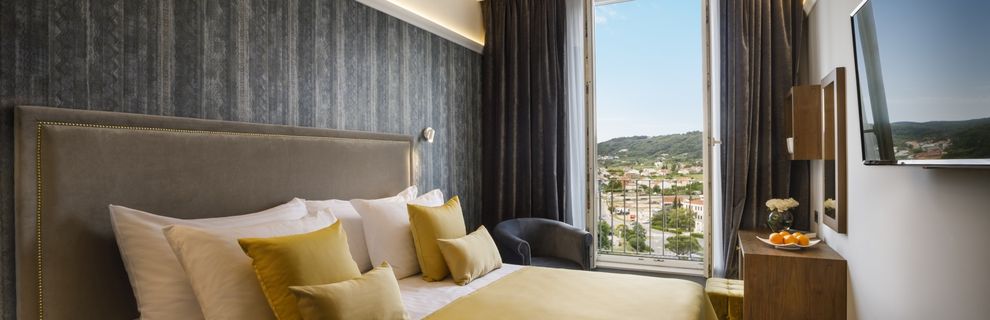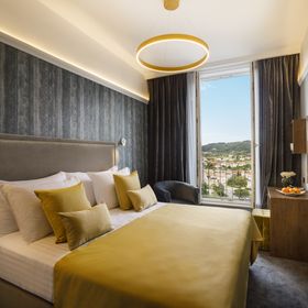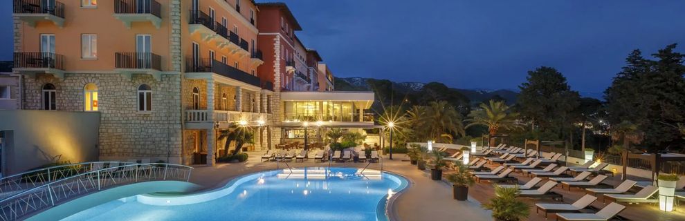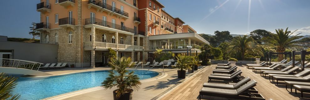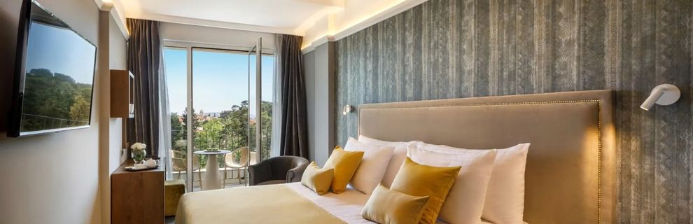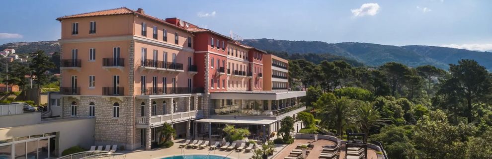 Hotel zaprasza na elegancki wypoczynek pośród śródziemnomorskiej zieleni parku Komrcar, tuż obok starego miasta Rab, gdzie Gość zrelaksuje się przy basenach, na tarasie słonecznym z muzyką oraz w strefie Wellness & SPA z saunami i jacuzzi, a czas umilą restauracja i bar, całodobowa recepcja zadba o komfort, a dostępne na miejscu Wi-Fi, sala konferencyjna i parking dopełnią wygody.