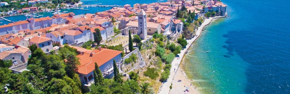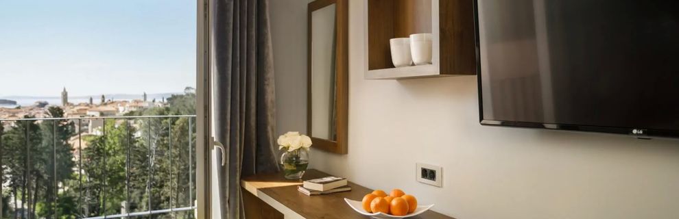 Hotel położony jest w parku Komrcar, blisko starówki Rab.