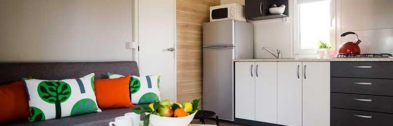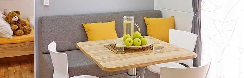 obiekt campingowy z 42 dużymi i nowoczesnymi mieszkaniami z kompletnie wyposażoną wnęką kuchenną, hol powitalny, WLAN w lobby gratis, restauracja z tarasem na dachu. Na zewnątrz grill i siłownia na powietrzu. Pralnia za dodatkową opłatą. Basen. Leżaki i parasole przy basenie gratis, na plaży za opłatą. Bar na plaży czynny w terminie ok. 21.06-6.09.