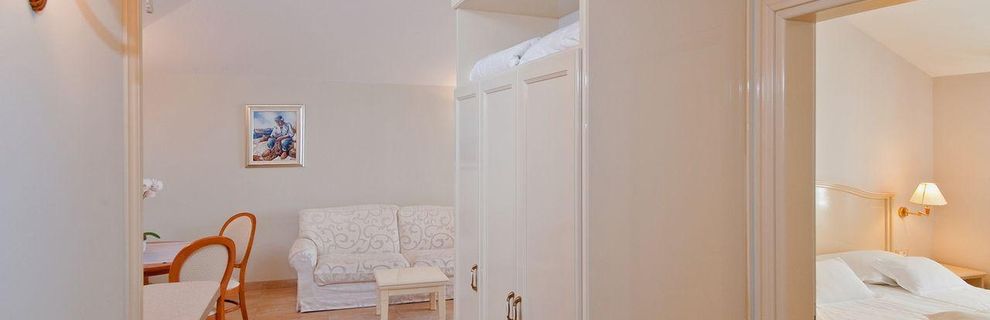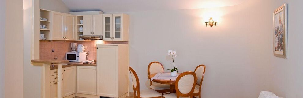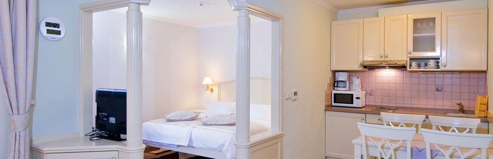 Hotel składa się z 12 apartamentów o różnej wielkości. Wszystkie apartamenty posiadają balkony z widokiem na morze, klimatyzację, telefon, sejf, telewizję satelitarną, łącze internetowe, wyposażoną kuchnię, bardzo duże podwójne łóżko. W salonie apartamentu i studio znajdują się sofy jako dodatkowe łóżko dla dwóch osób.