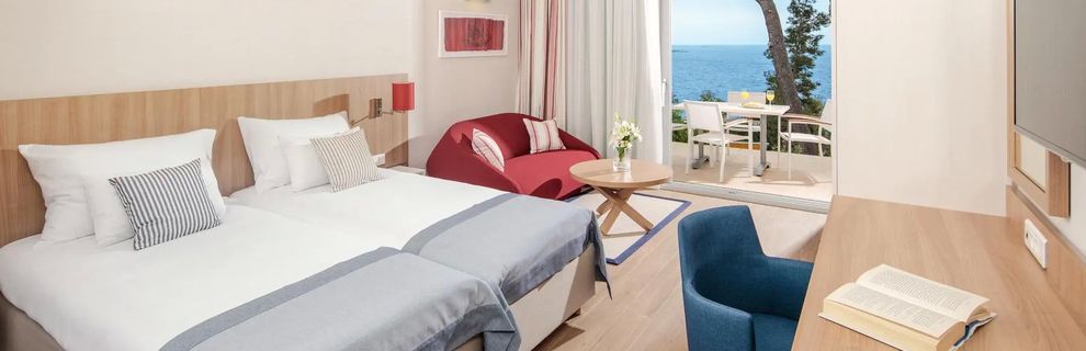 Czterogwiazdkowy, komfortowy obiekt z 334 pokojami położony jest w wyjątkowej lokalizacji - na wyspie dla pieszych Sveti Nikola, z dala od miejskiego zgiełku, a jednocześnie z łatwym dostępem do starówki Porec. Goście docenią spokojną atmosferę, rozbudowaną infrastrukturę wypoczynkową, aż 5 restauracji na wyspie, przestronny taras słoneczny z basenem oraz przyjazną, rodzinną atmosferę. Hotel zapewnia nowoczesne udogodnienia oraz różnorodne atrakcje, zarówno dla dorosłych, jak i dla najmłodszych Gości.