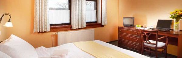 Dwuosobowe z łazienką (z wanną lub prysznicem, toaletą, suszarką do włosów), mini-barkiem, TV, telefonem, możliwością dostawki.