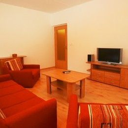 Apartament składa się z jednego przestronnego pomieszczenia (TV, CD) z aneksem kuchennym (w pełni wyposażonym) oraz dużej, jasnej łazienki i przedpokoju. Przeznaczony jest dla 2-4 osób (łóżko małżeńskie oraz rozkładana kanapa dla 2 osób).