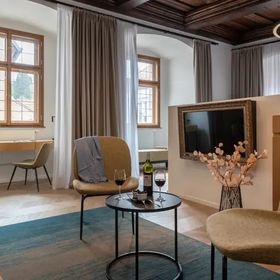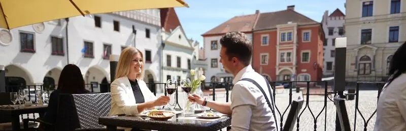 Krumlov, w centrum miasta, 500 m od przystanku autobusowego, na wysokości 492 m n.p.m., 3 km od tras narciarstwa biegowego, 7 km od pola golfowego, 30 km od wyciągów.