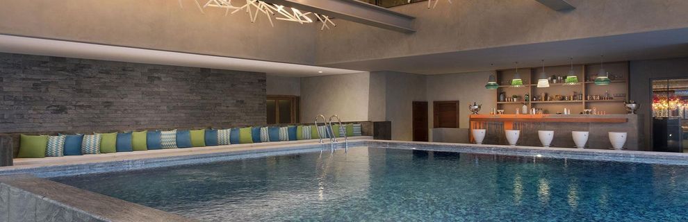 W hotelu basen wewnętrzny, basen zewnętrzny oraz infinity pool z leżakami i barem.
