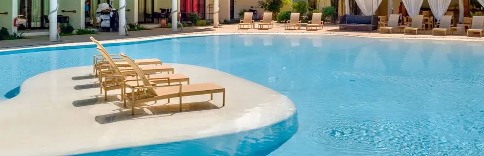 2 baseny o wodzie słodkiej, przy których znajdują się bezpłatne leżaki.