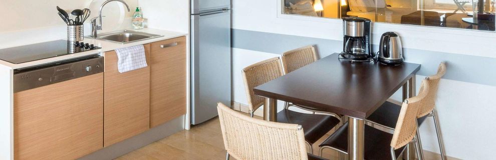 Pokoje wyposażone są w klimatyzację, centralne ogrzewanie, kuchnię i łazienkę. Większość pokoi posiada balkon z widokiem na okolicę. Większość kwater zwrócona jest ku morzu. Pomieszczenia mieszkalne i sypialne wyposażone są w łóżko podwójne bądź łóżko typu king size. Ponadto skorzystać można z sejfu i biurka. Aneks kuchenny dla osób samodzielnie się stołujących jest optymalnie wyposażony w lodówkę, kuchenkę gazową, kuchenkę mikrofalową, ekspres do kawy / herbaty i zmywarkę do naczyń. Ponadto dostępne są pralka i zestaw do prasowania. Elementami podwyższającymi komfort pobytu są internet, telefon, telewizor i Wi-Fi. Dostępne są pokoje przystosowane dla osób poruszających się na wózkach inwalidzkich. Łazienki dysponują prysznicem i wanną. W łazience goście znajdą suszarkę do włosów. Istnieje również możliwość rezerwacji kwatery z łazienką dla osób niepełnosprawnych. Hotel apartamentowy oferuje pokoje dla niepalących i pokoje dla palących.
