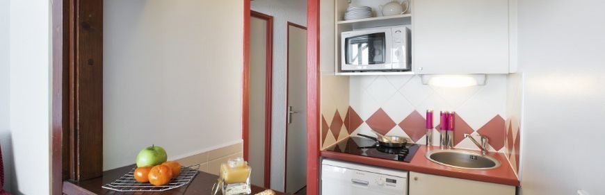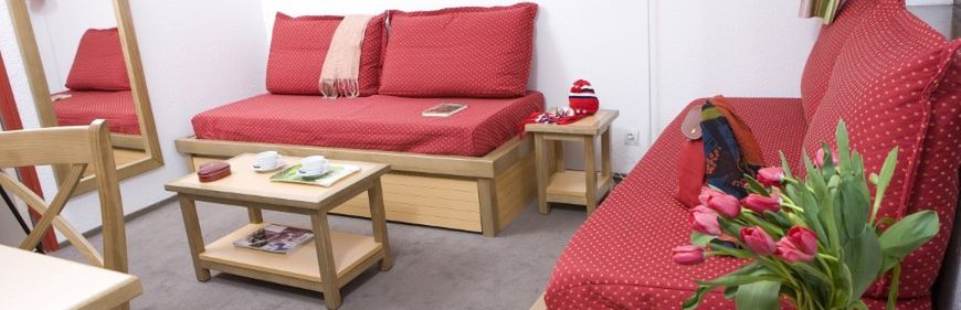 Apartamenty, znajdujące się od południowej strony obiektu, to połączenie pokoju dzienno-sypialnego, wyposażonego w TVi częściowo oddzielnej sypialni. Dostępna jest również łazienka lub prysznic/WC, jak i balkon lub taras. Dobrze wyposażona nisza kuchenna posiada kuchenkę elektryczną, kuchenkę mikrofalową z funkcją grilla, zmywarkę do naczyń oraz lodówkę.