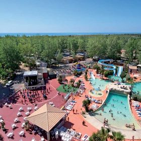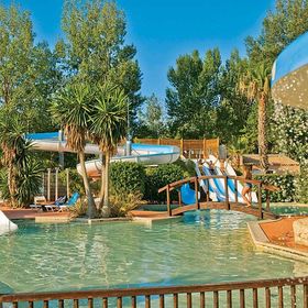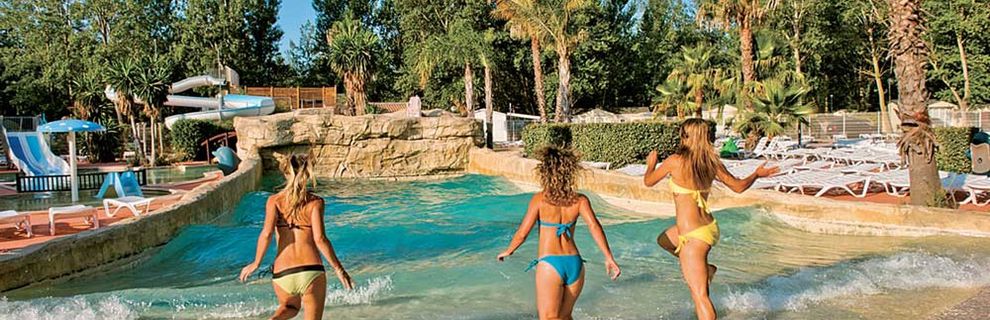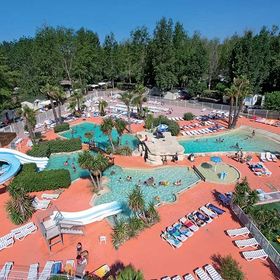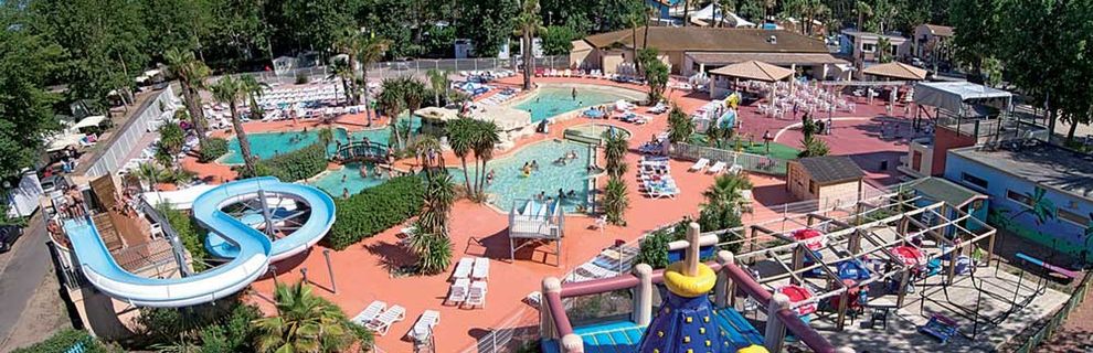 ogromny camping (ok. 8 ha) z 277 mobilhomes. Recepcja, restauracja, bar, mini market, WLAN (za opłatą), pralnia i suszarnia (za opłatą). 2 duże baseny z oddzielnymi brodzikami (woda podgrzewana ok. 13.04-28.09). Duża zjeżdżalnia, potrójna zjeżdżalnia. Leżaki i parasole. Uwaga, na basen zakaz wstępu w szortach kąpielowych, obowiązek noszenia opasek klubowych.