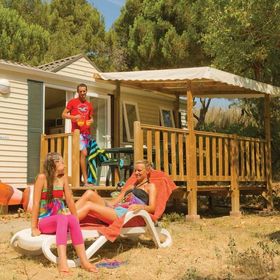 prysznic, WC, wnęka kuchenna (kuchenka, lodówka, ekspres do kawy, k. mikrofalowa), miejsce do spożywania posiłków, taras. F6F: trzypokojowy mobilehome dla 6 os. (ok. 29 m kw). Pokój dzienny z rozkładaną kanapą, pokój 2-os., pokój z 2 łóżkami. F6G: trzypokojowy mobilehome dla 6 os. (ok. 29 m kw). Jak F6F, dodatkowo z klimatyzacją. F8K: czteropokojowy mobilehome dla 8 os. (ok. 32 m kw). Pokój dzienny z rozkładaną kanapą, pokój 2-os., 2 pokoje z 2 łóżkami. F8M: czteropokojowy mobilehome dla 8 os. (ok. 32 m kw). Jak F8K, dodatkowo balkon.