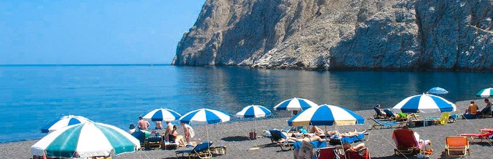 Żwirkowa, wulkanicznego pochodzenia plaża Kamari znajduje się około 500 m od hotelu, oferując serwis plażowy.