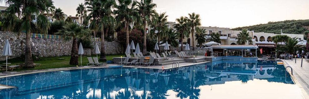 Hotel usytuowany na wzgórzu, na sporym terenie, bez ścisku sąsiadujących hoteli, czy innych zabudowań. Nie przylega do żadnej ruchliwej ulicy. Składa się z kilku budynków z odrębnymi wejściami do pokoi. Hotel ma swoje lata, ale jest dosyć zadbany, mieści się w kategorii 3 *. Miejsce dla chcących wypocząć w spokoju, bez hałaśliwych animacji. Posiada spory basen + brodzik dla dzieci. Do plaży nie jest daleko, spacerkiem jakieś 10 minut. Plaża nie jest wielka, ale z urokliwą zatoką. Sama miejscowość też niewielka, spokojna, przy samej plaży kilkanaście niezłych knajpek, sklepików, 2 wypożyczalnie samochodów. Dojazd do Hani z centrum miasteczka autobusem.