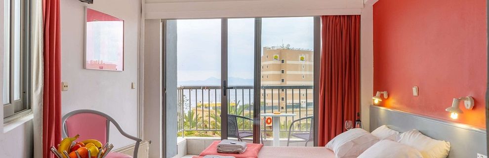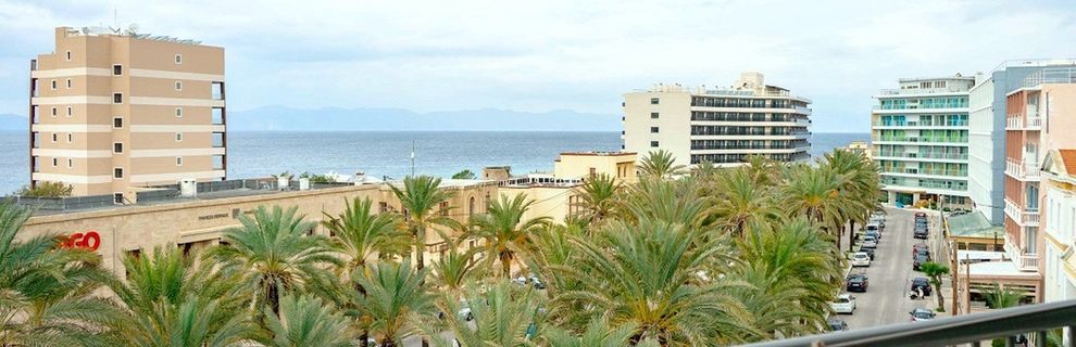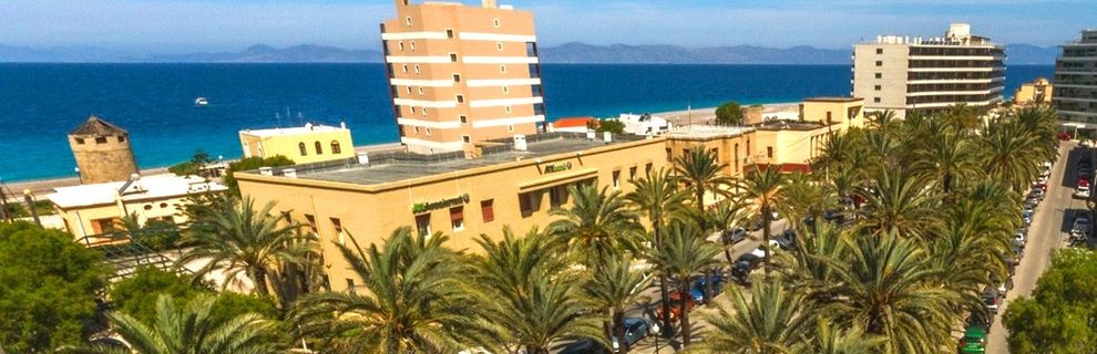 1 km od miasta Rodos, 15 km od lotniska w Rodos. Hotel usytuowany na powierzchni 4000 m2.