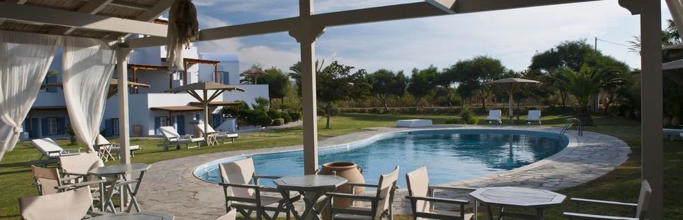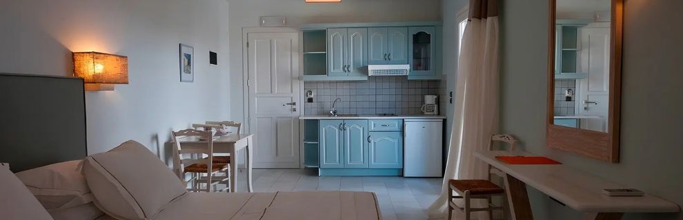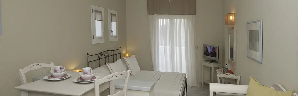 Zaprojektowany w stylu Cyklad, ten czterogwiazdkowy hotel oferuje spokojny wypoczynek dla par. Znajduje się w nim 10 komfortowych pokoi, każdy z wyposażonym aneksem kuchennym. Goście mogą zrelaksować się w ogrodzie lub przy basenie, ciesząc się jasnymi i komfortowymi wnętrzami.