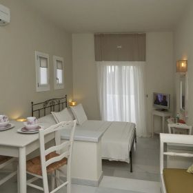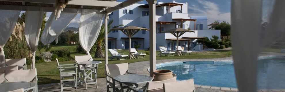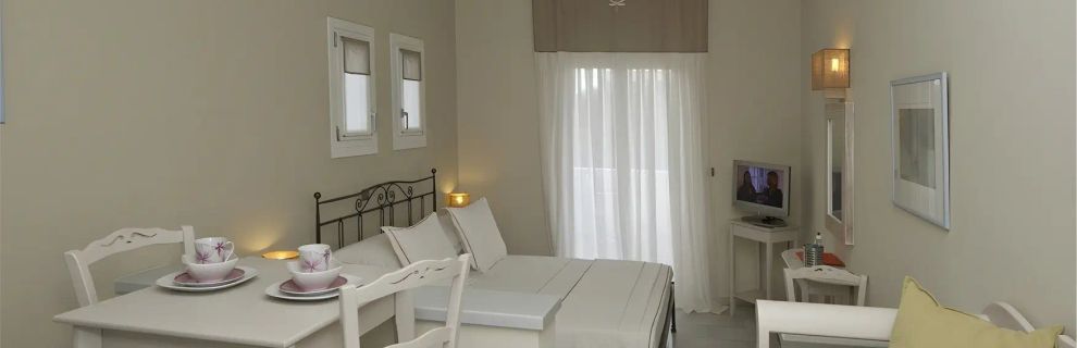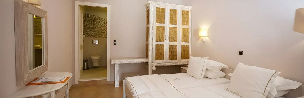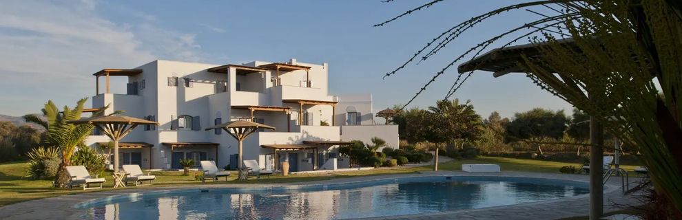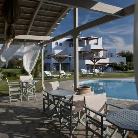 Zaprojektowany w stylu Cyklad, ten czterogwiazdkowy hotel oferuje spokojny wypoczynek dla par. Znajduje się w nim 10 komfortowych pokoi, każdy z wyposażonym aneksem kuchennym. Goście mogą zrelaksować się w ogrodzie lub przy basenie, ciesząc się jasnymi i komfortowymi wnętrzami.