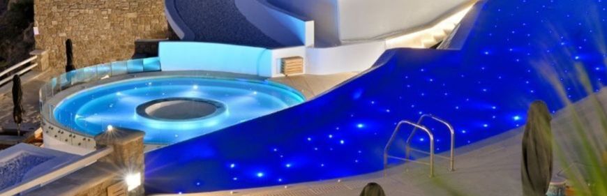 Na terenie obiektu znajdują się zarówno odkryte, jak i kryte baseny, a także taras do opalania z leżakami i parasolami przeciwsłonecznymi. Dla wygody Gości dostępne jest również jacuzzi i bar z przekąskami.