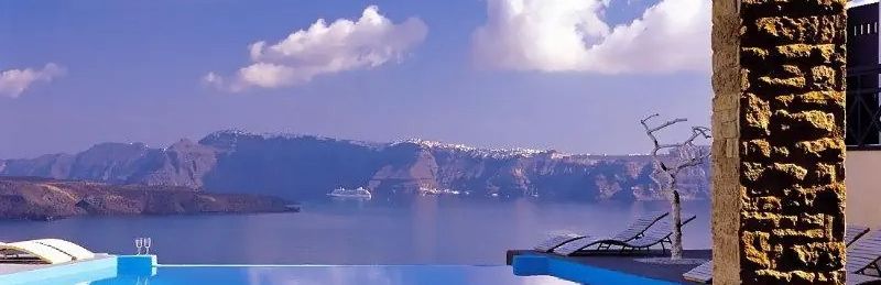 Hotel położony jest w malowniczej lokalizacji na klifie kaldery w pobliżu wioski Akrotiri.