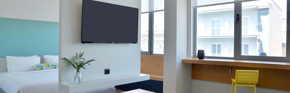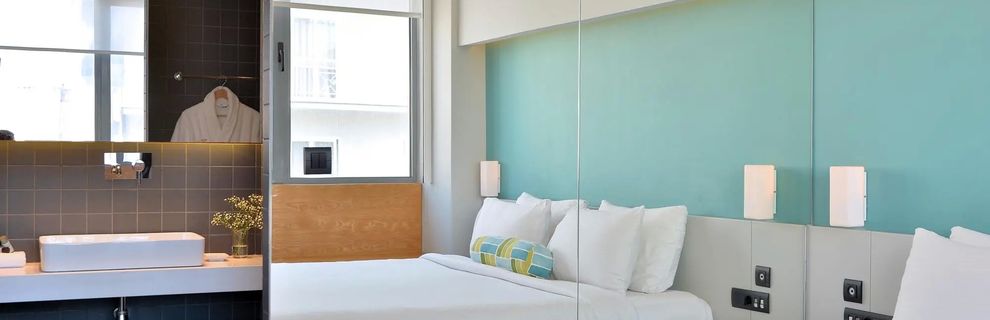 Nowoczesny, stylowy obiekt w sercu Aten, idealny dla osób poszukujących komfortu, miejskiego klimatu i praktycznych rozwiązań podczas podróży. Hotel oferuje jasne, ergonomicznie zaprojektowane pokoje i apartamenty - część z nich to pokoje rodzinne z aneksem kuchennym, a także ekskluzywne suity z widokiem na miasto. Goście docenią designerskie wnętrza z kolorowymi akcentami, obfitą naturalną światłość i szeroki zakres nowoczesnych udogodnień. To idealne miejsce zarówno dla osób podróżujących służbowo, jak i rodzin czy par chcących skorzystać z miejskich atrakcji Aten.