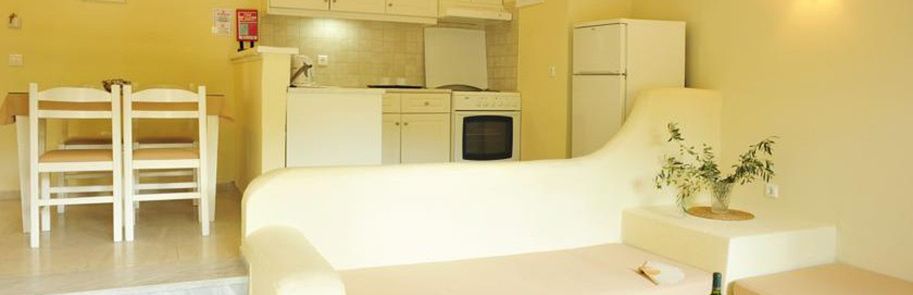 Wyposażone są w klimatyzację (płatny), TV, aneks kuchenny, lodówkę, zestaw do parzenia kawy i herbaty, łazienkę (WC, prysznic), balkon.
