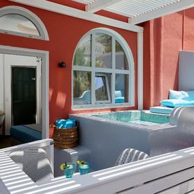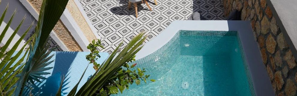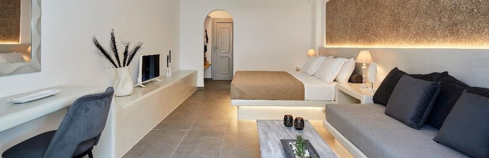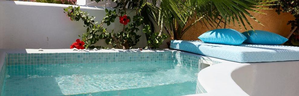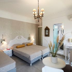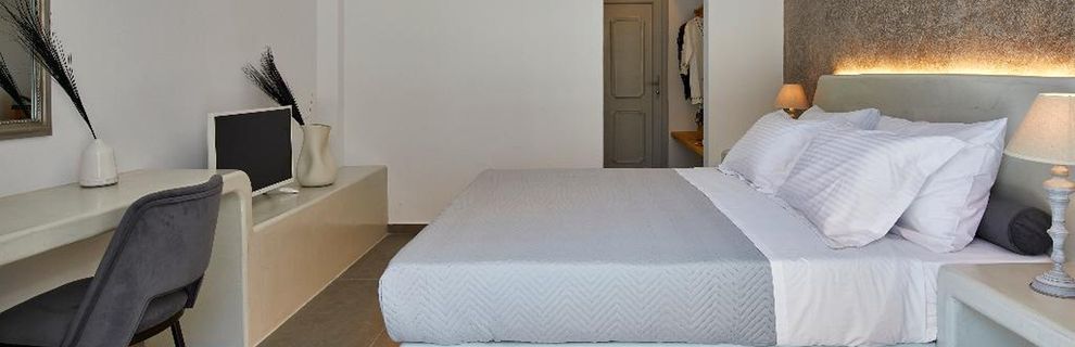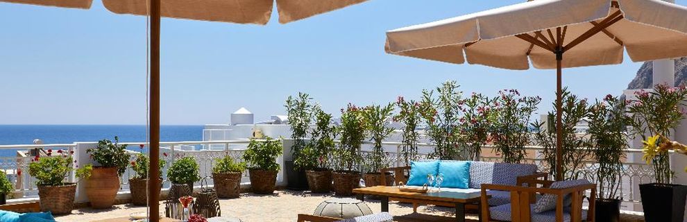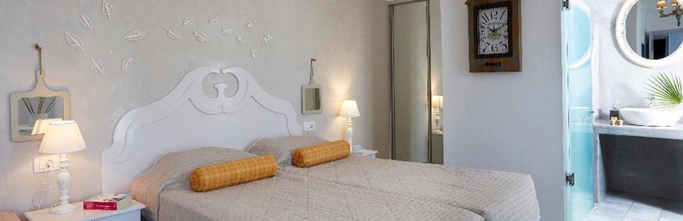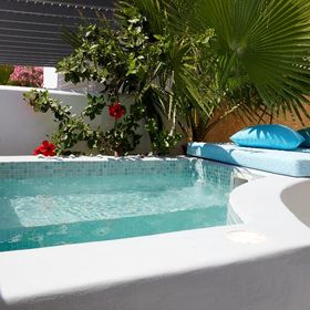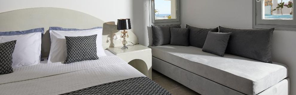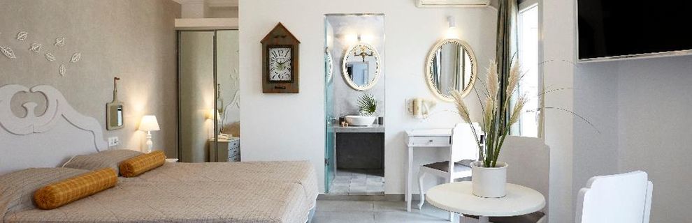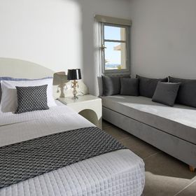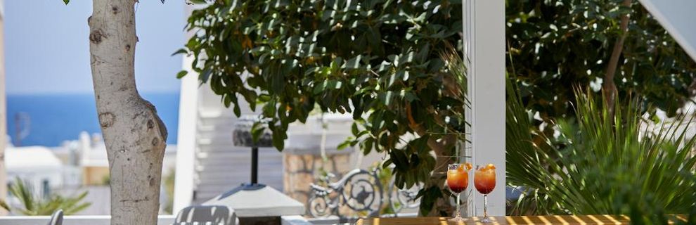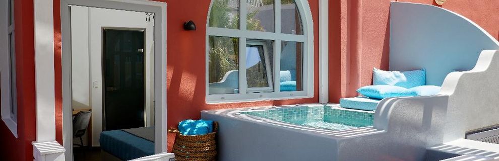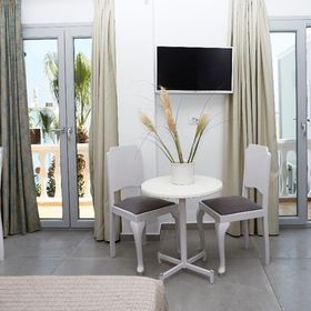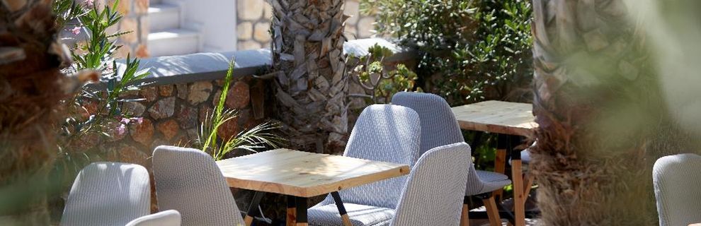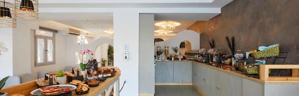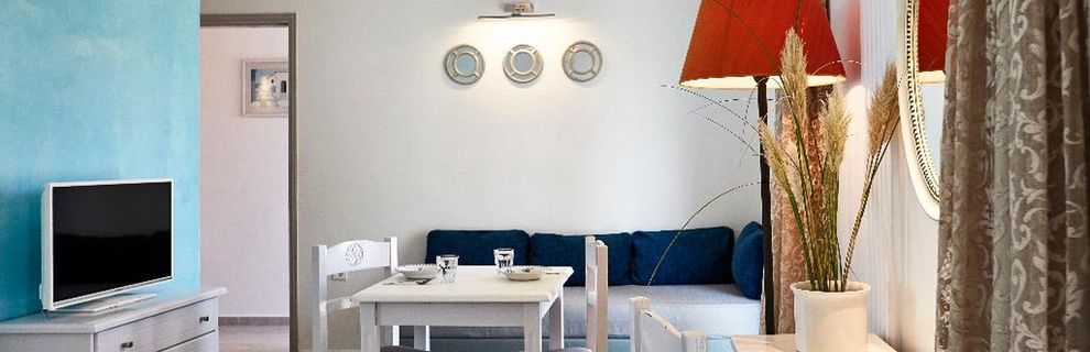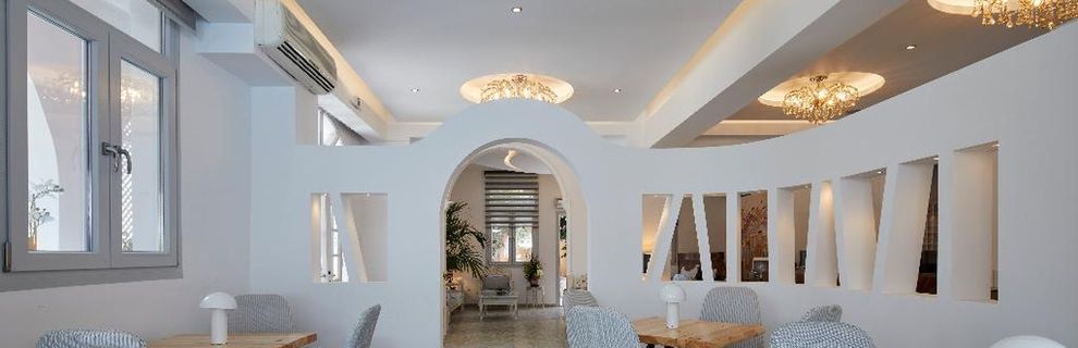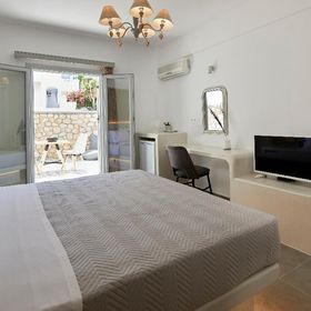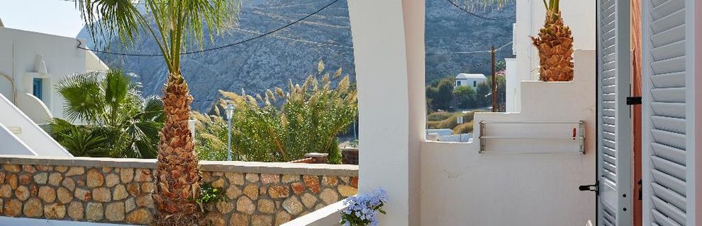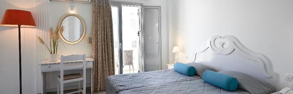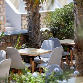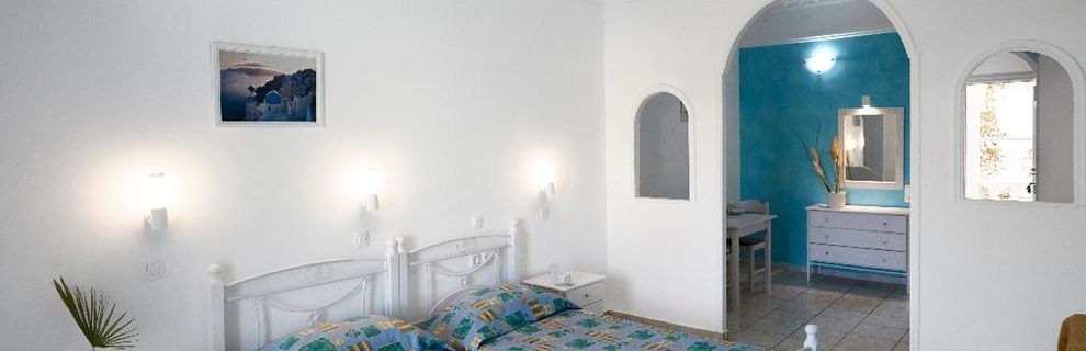 Niewielki obiekt, który posiada 57 pokoje, recepcję, salę śniadaniową, 2 baseny, bar przy basenie, salę TV, niewielki parking. Po wulkanicznej, żwirkowej plaży jest około 200 m. Bezpłatne leżaki i parasole przy basenie.